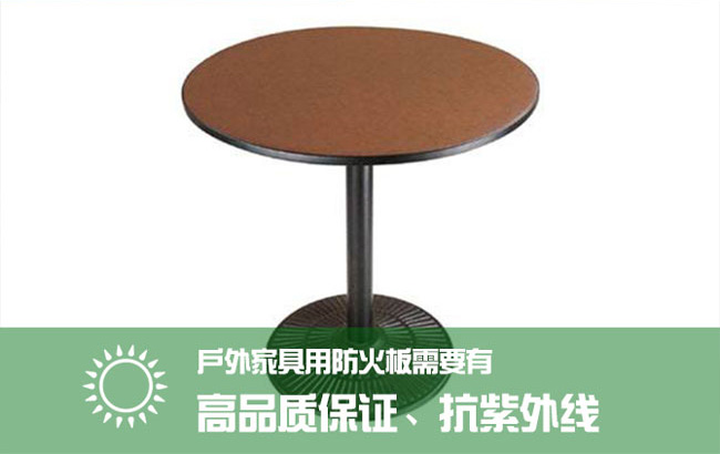 4、戶外家具(非掛墻類):防火板有時候也會應用在室外的家具或臺面,由于室外的紫外線照射時間長、風化作用強,所以對膠合強度和印刷油墨要求更高以外還需要具有抗紫外線能力;