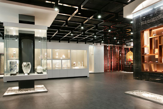 偉業陶瓷是一家從事酒店用瓷、日用陶瓷餐具的研發,制造和經營,集科、工、貿于一體的民營企業,是國內大型日用瓷器生產廠家之一,而廣東偉業陶瓷美術館是偉業公司做產品展示的美術館,采用霜白G101-S防火板做展柜表面裝飾,淺蛋殼色G141-S防火板做展柜內飾背景板;