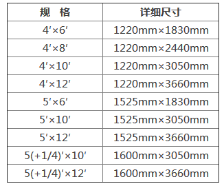 抗倍特板由于采用多層紙疊壓的工藝制作,所以板材厚度在廠家這邊并沒有太過嚴格的規定,基本可以按照客戶的需求來確定,市場上一般的抗倍特板厚度在1.6mm-25mm之間,如果有特殊要求需要在此基礎上更薄或者更厚也無不可,抗倍特板的大小尺寸由于受機器限制主要有一下九種大小尺寸可供選擇: