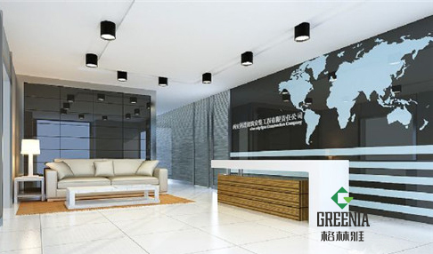 這個辦公室設計的前臺,采用木紋防火板,體現公司注重人與大自然的結合,給員工創造一種舒適、放松的工作環境,再用綠色的裝飾作為搭配,可謂是把春天來臨的主題生動形象地表達出來。