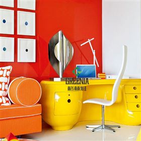 芒果色防火板G208-G可用于家居中的室內裝飾、家具的表面、臺面、門、櫥柜、商場貨架、試衣間、展柜、書柜、衣柜、辦公桌等地方。