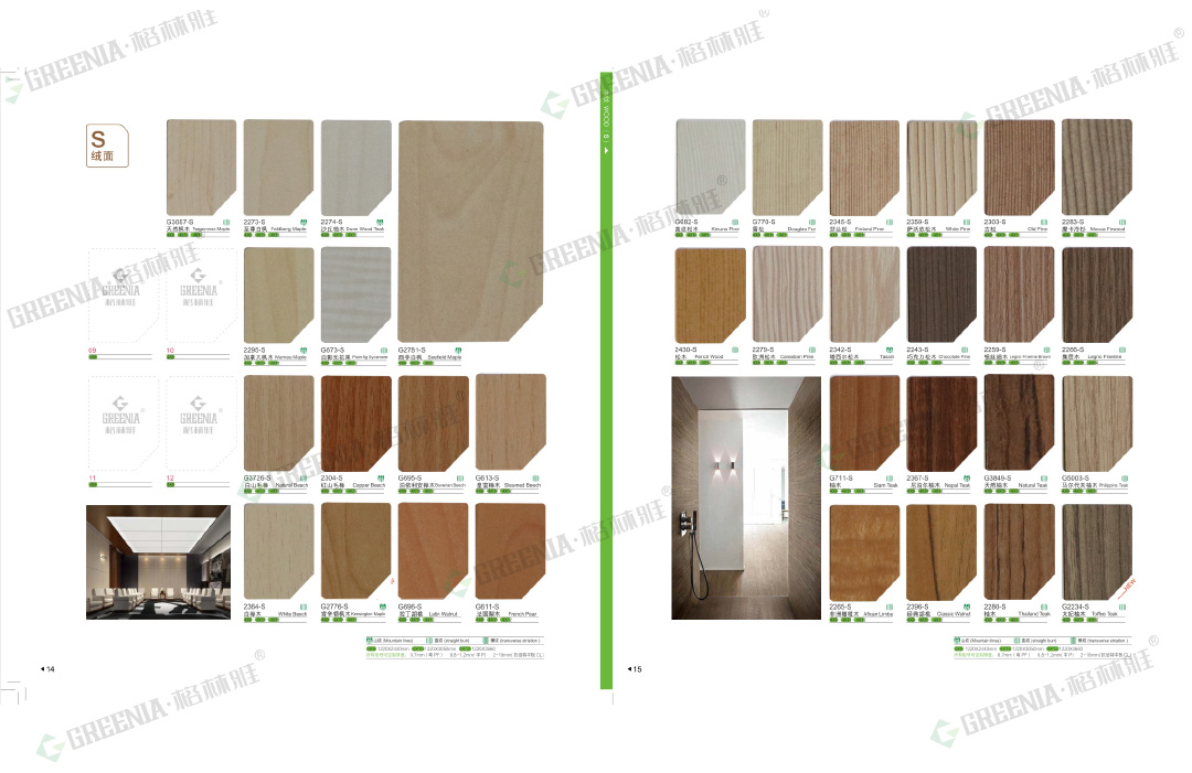 格林雅防火板擁有55種表面處理及3532種花色紋路,品種齊全。包括光面G、啞面M、絨面S、油漆P、霧面WS、波浪紋RS、壓木紋X、編織紋PX、優(yōu)雅皮紋XO、皮紋SL、壓木紋SH、拉絲ST、刷木紋F、優(yōu)雅刷木紋MF、絲絨面CF、羽翎面FT、纖絲紋、天然木皮、影點U、橫紋E、豎紋H、雨絲紋MV、橫紋WH、原木刷紋WB等多種不同的表面處理,可做成平板、彎曲板。歡迎您來樣定做!