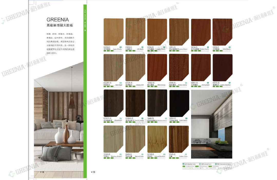 格林雅防火板是一種表面裝飾材料,具有豐富的色彩和各種表面紋理。格林雅高級裝飾耐火板具有: