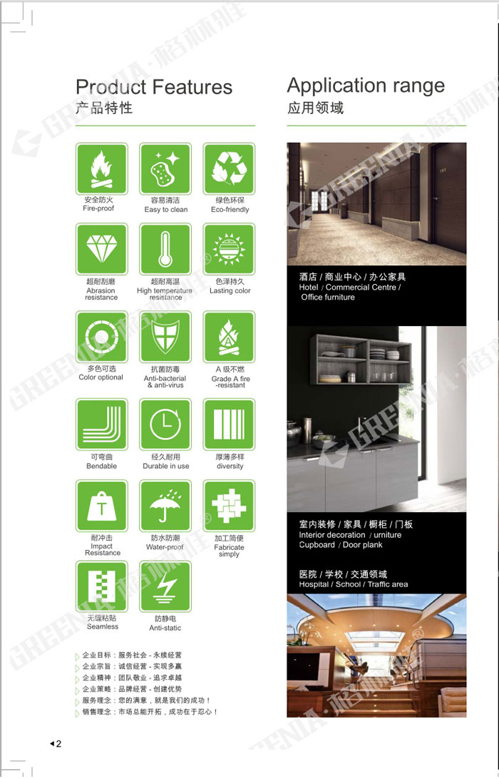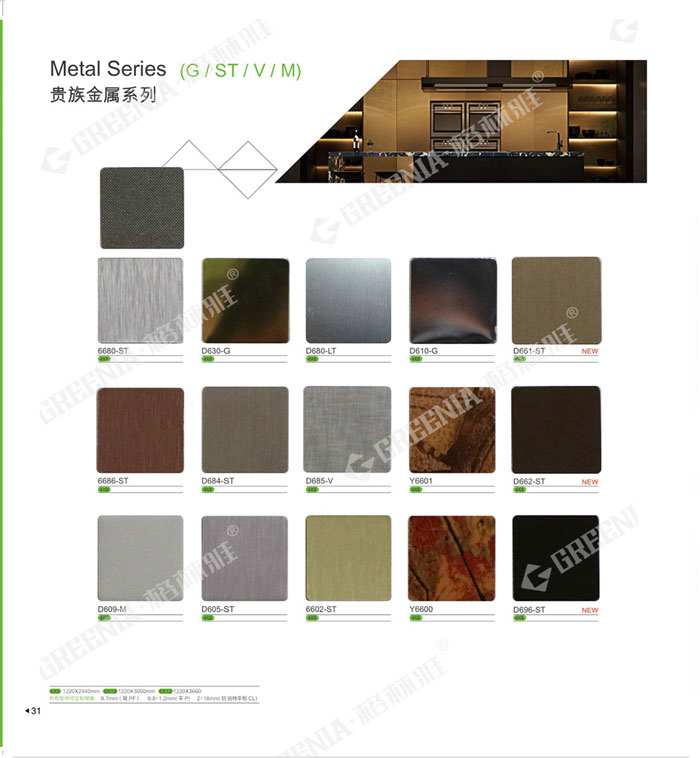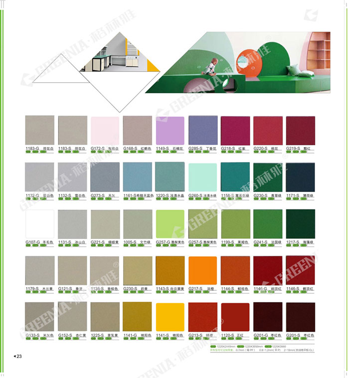 格林雅防火板是一種表面裝飾材料,具有豐富的色彩和各種表面紋理。格林雅高級裝飾耐火板具有: